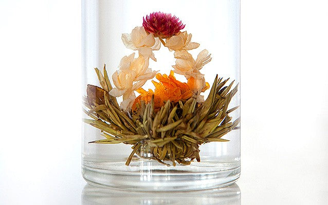 Sposób użycia: 1. Podgrzać 400 ml wody do temperatury około 80°C (nie gotować). 2. Umieścić kulę w szklanym imbryku i opłukać niewielką ilością ciepłej wody, którą następnie wylać. 3. Napełnić imbryk gorącą wodą. Kula powoli zacznie się otwierać, odsłaniając kwiaty. 4. Z tą samą kulą można parzyć herbatę 3-4 razy w krótkim czasie.