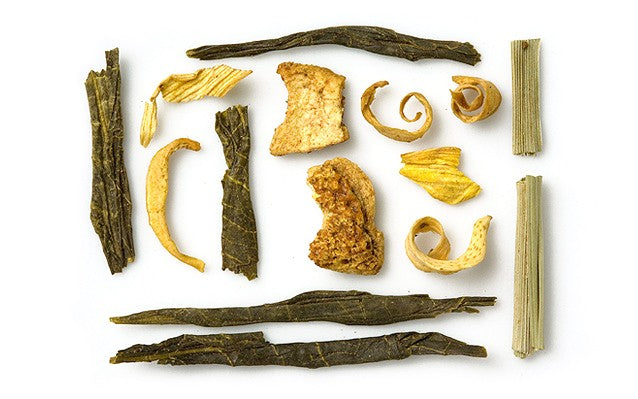 Zielona herbata Sencha łącząca chłodne, cytrusowe aromaty kwiatu pomarańczy, trawy cytrynowej i skórki pomarańczowej z pikantnym imbirem i świeżością piżmowego mirtu górskiego, eukaliptusa i rozmarynu.